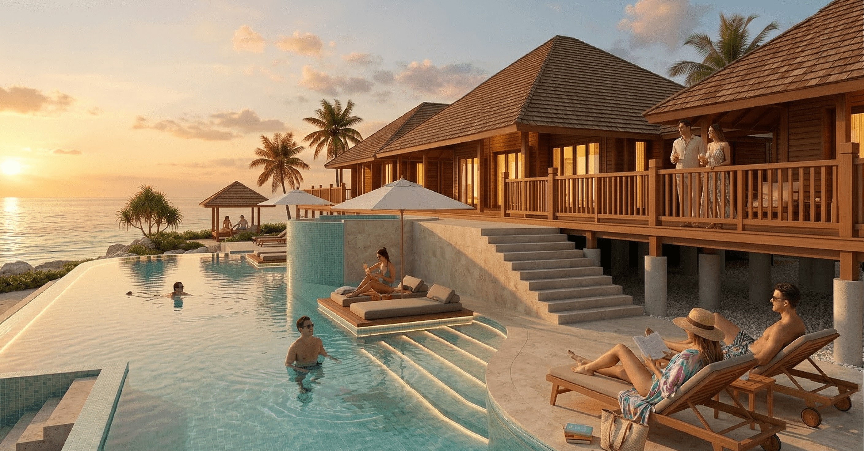 Using premium sustainable hardwood, renowned for its strength, durability, and environmental benefits, this prefabricated tropical villa highlights the beauty of natural materials. The combination of speed, quality, and resilience makes hardwood timber the ideal choice for modern luxury resort construction in tropical climates.
